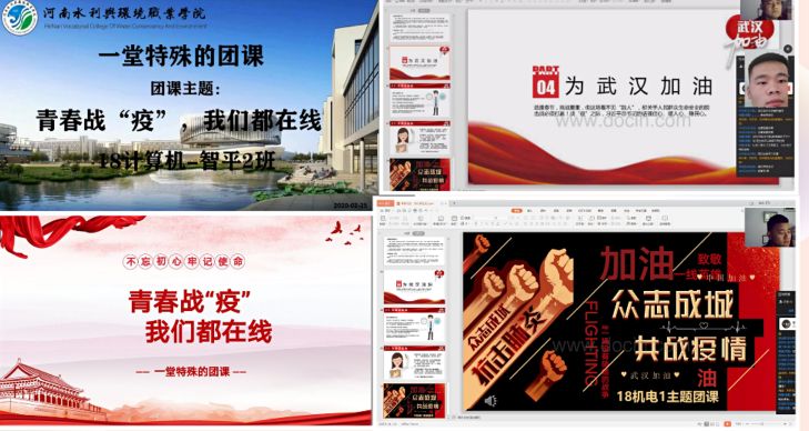 我系积极响应院团委号召,认真筹备,组织77个在校班级开展了以“青春战‘疫',我们都在线”为主题的网络团课。团课旨在号召全系员工自主居家学习,上好每一堂网课,以自己的实际行动,支持疫情防控工作。团课由各班团支书主持,全体员工参与。