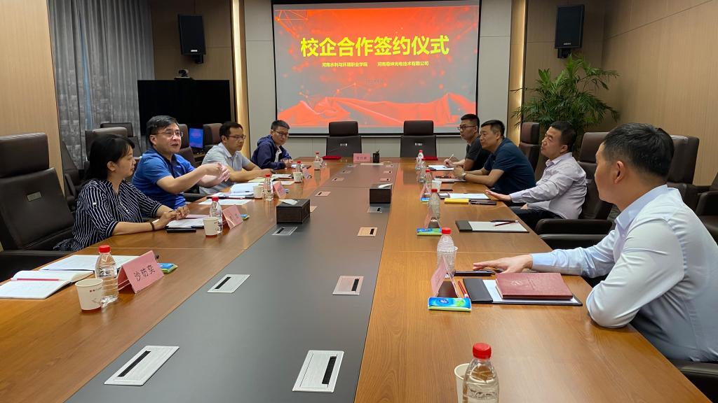 5月10日,公司与河南尊绅光电技术有限公司签订校企合作协议,并举行了公司实践教学基地和社会实践教育基地挂牌仪式。副董事长张凌杰,新郑电子信息产业园区有关负责人,河南尊绅光电技术有限公司常务副总李建文出席签约仪式。