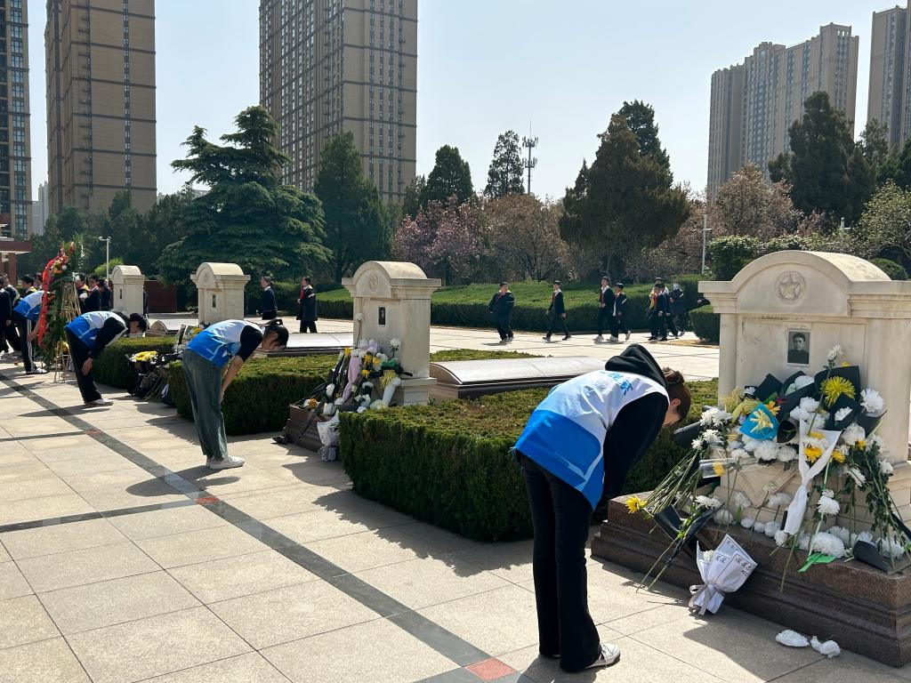 活动开始,同学们整齐地排列在陵园的入口,随着国歌声起,所有人庄严肃立。随后,大家缓步走到烈士墓碑前,向烈士纪念碑鞠躬致敬,敬献鲜花,认真地擦拭烈士墓碑,表达深切的哀思。随后,同学们前往中原烈士纪念馆参观学习了抗日战争厅、解放战争厅,以及焦裕禄、任长霞纪念厅等展厅,被一幅幅英烈的浮雕所震撼,被一个个感人的英烈故事所感动。