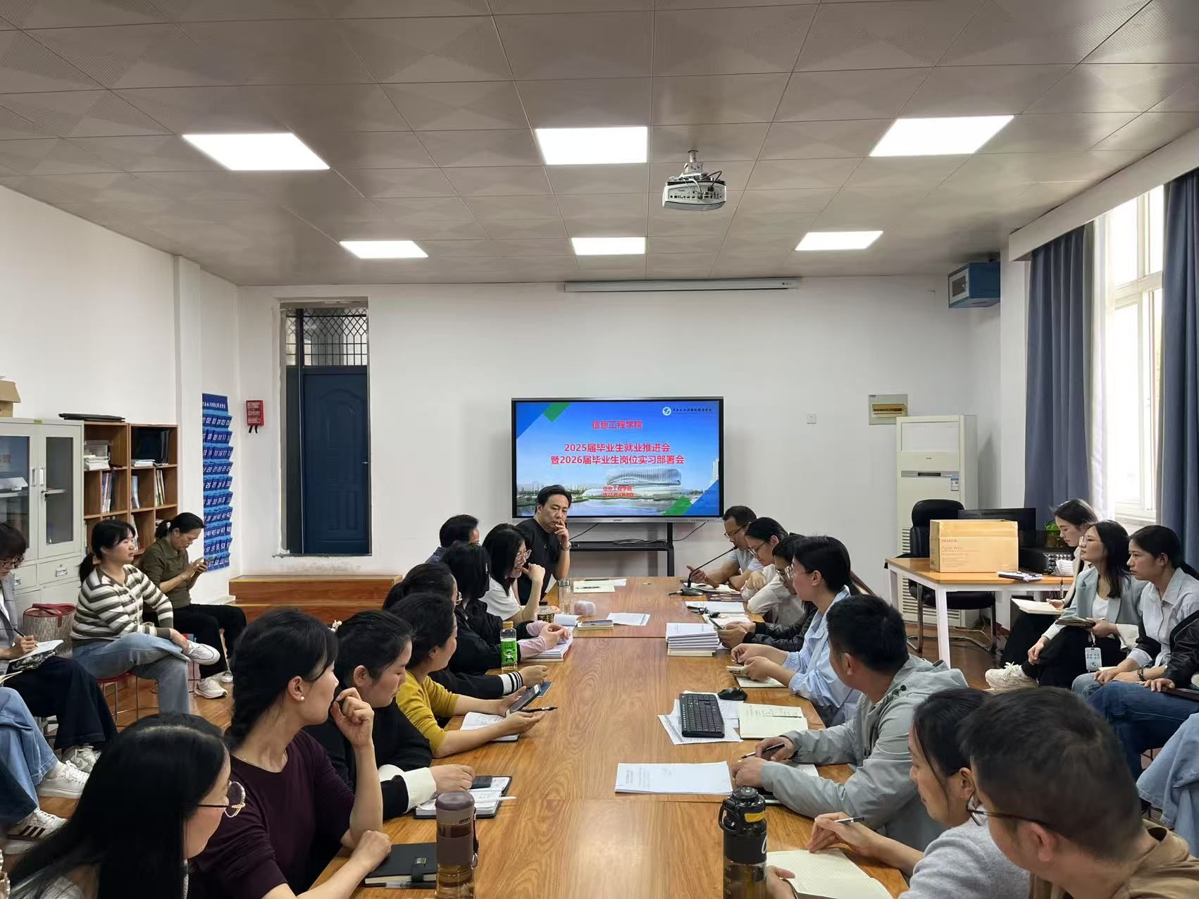 会后,辅导员及班主任立即开展就业与实习主题班会,将会议精神精准传达至毕业生,推动形成“公司统筹、教师联动、员工参与”的就业实习工作闭环。此次会议为公司下一阶段就业与实习工作明确路径,标志着“全过程育人、全链条服务”就业体系的进一步深化。