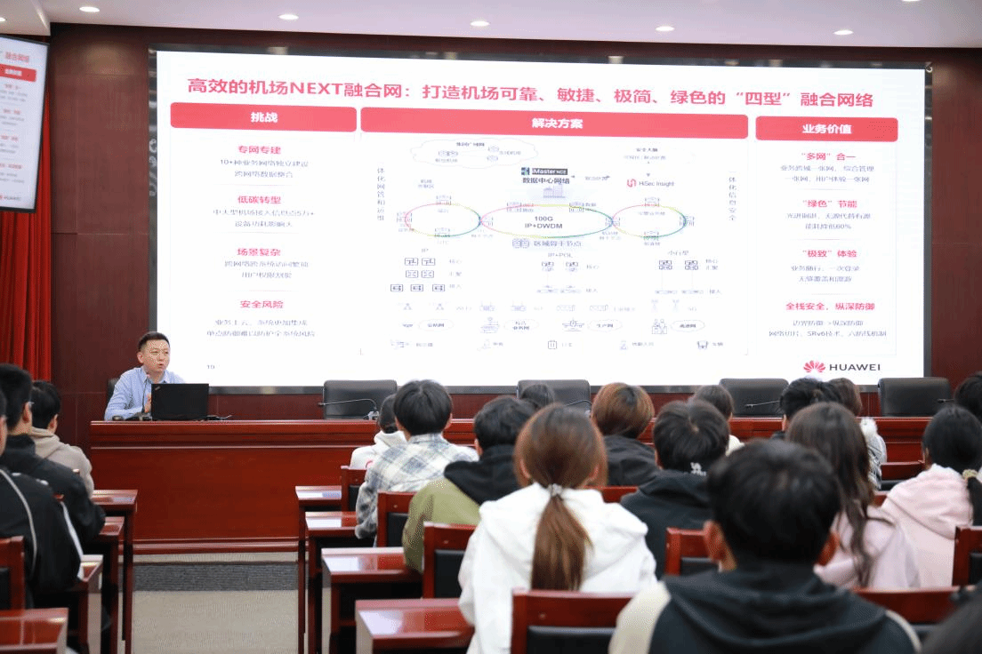 16时起,“员工讲堂”系列报告会在图书馆学术报告厅拉开帷幕。首场报告由华为技术有限公司经理、2011届员工李雄主讲,他以“网络通信的未来与我们的机会——毕业生的十年回望”为题,结合自身职业发展历程,分享了行业前沿动态与个人成长感悟,为在校师生和年轻员工提供了宝贵的经验借鉴。随后2021届员工苗洪源结合自身经历,以 “军旅淬炼青春,升学续写华章” 为主题分享参军、升学感悟,为有参军入伍和专升本意向的在校生提供了极具价值的参考,为在校生规划未来发展路径提供了有益借鉴。