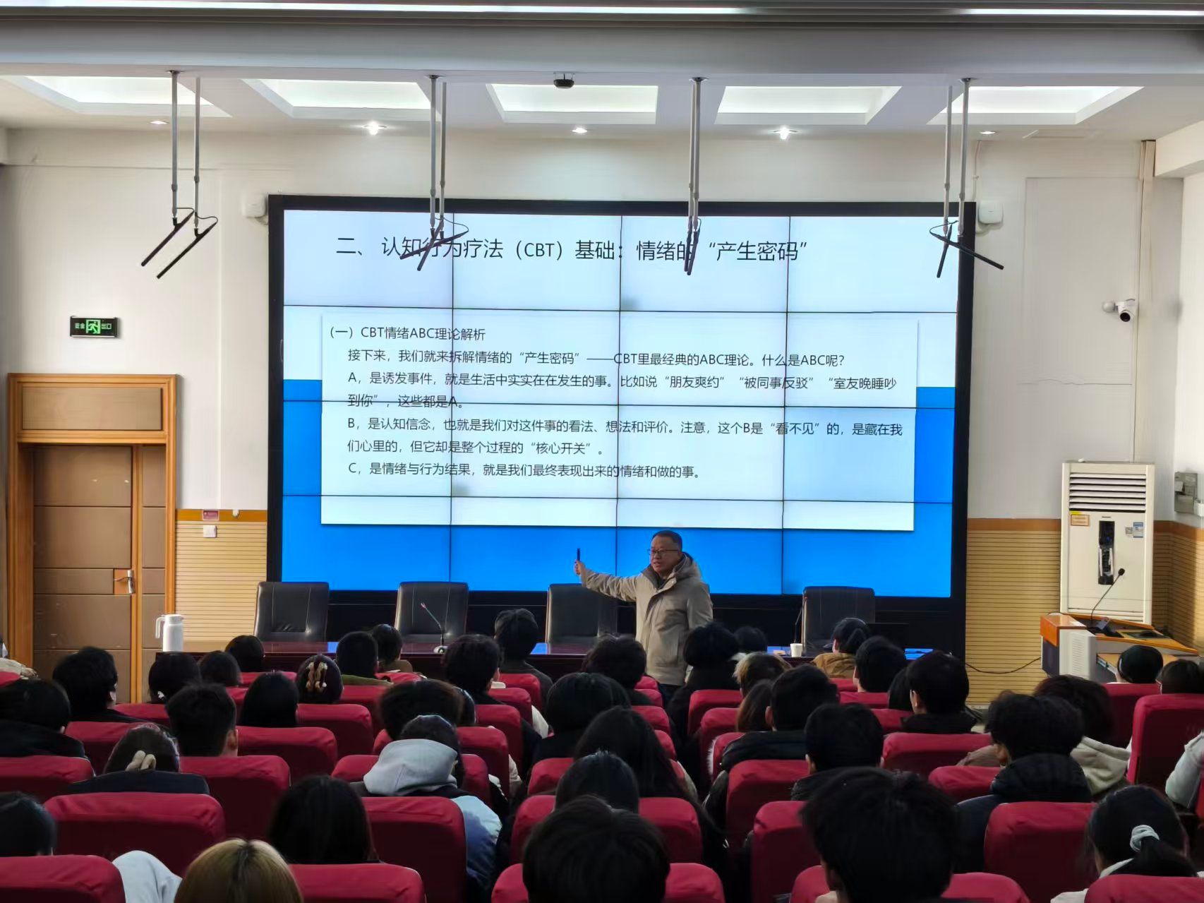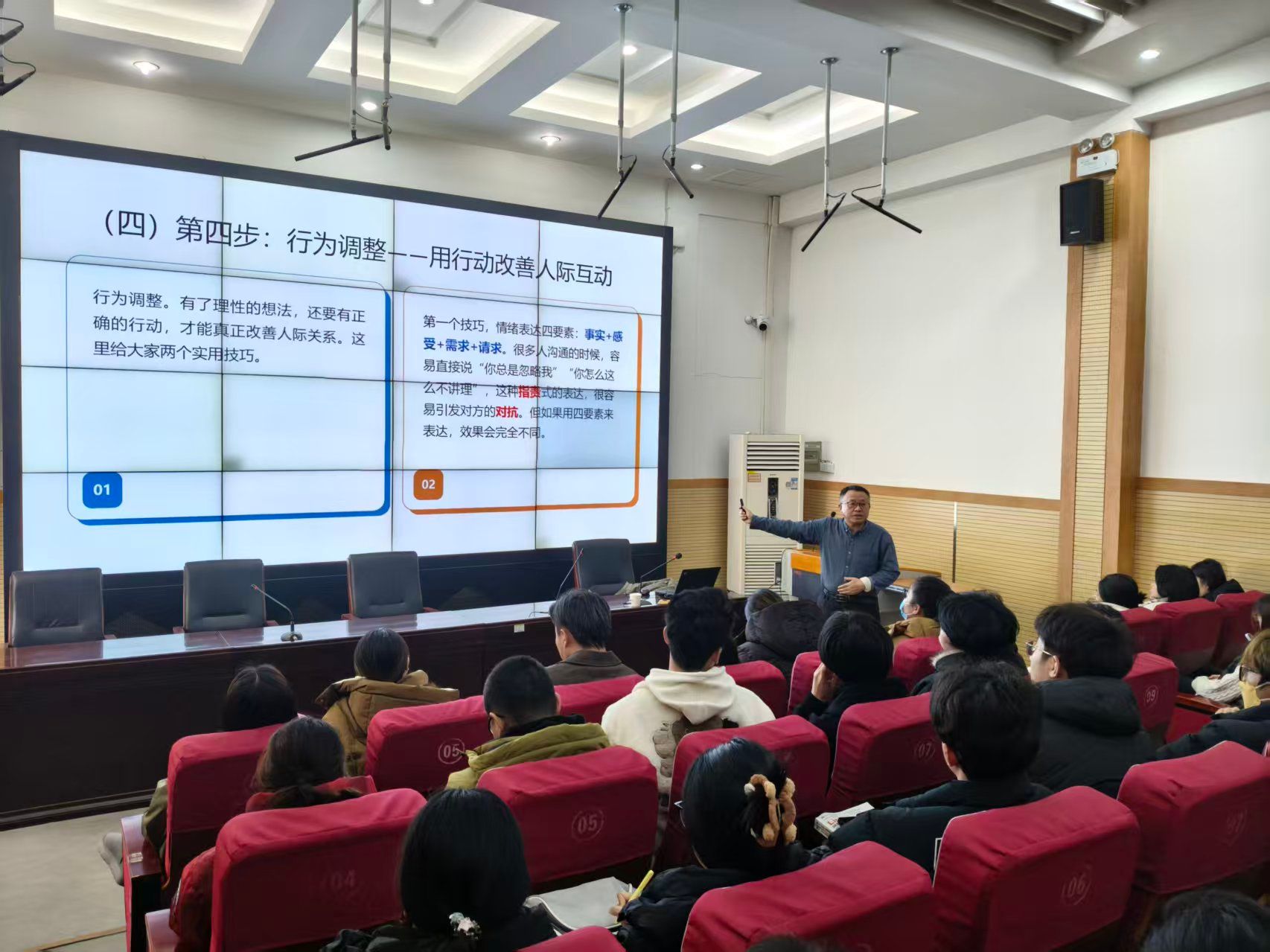 讲座中,杨伯箫教授以生动鲜活的案例为切入点,深刻剖析了情绪与人际关系的内在关联,指出情绪管理能力直接影响人际关系。针对高职员工的群体特点,专家系统讲解了认知行为疗法(CBT)的“情绪挑战四步法”和“情绪ABC理论”,通过现场互动问答、情景模拟等形式,引导员工学会精准感知自身情绪状态,掌握科学的情绪调节策略。