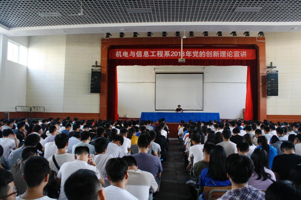 为深入学习贯彻党的十九大精神,坚持不懈推动党的创新理论进教材、进课堂、进头脑。9月10日下午16:30,机电与yl23411永利在南苑大礼堂举办“党的创新理论宣讲”活动。全系教职员工及2018级新生参加了本次宣讲会。