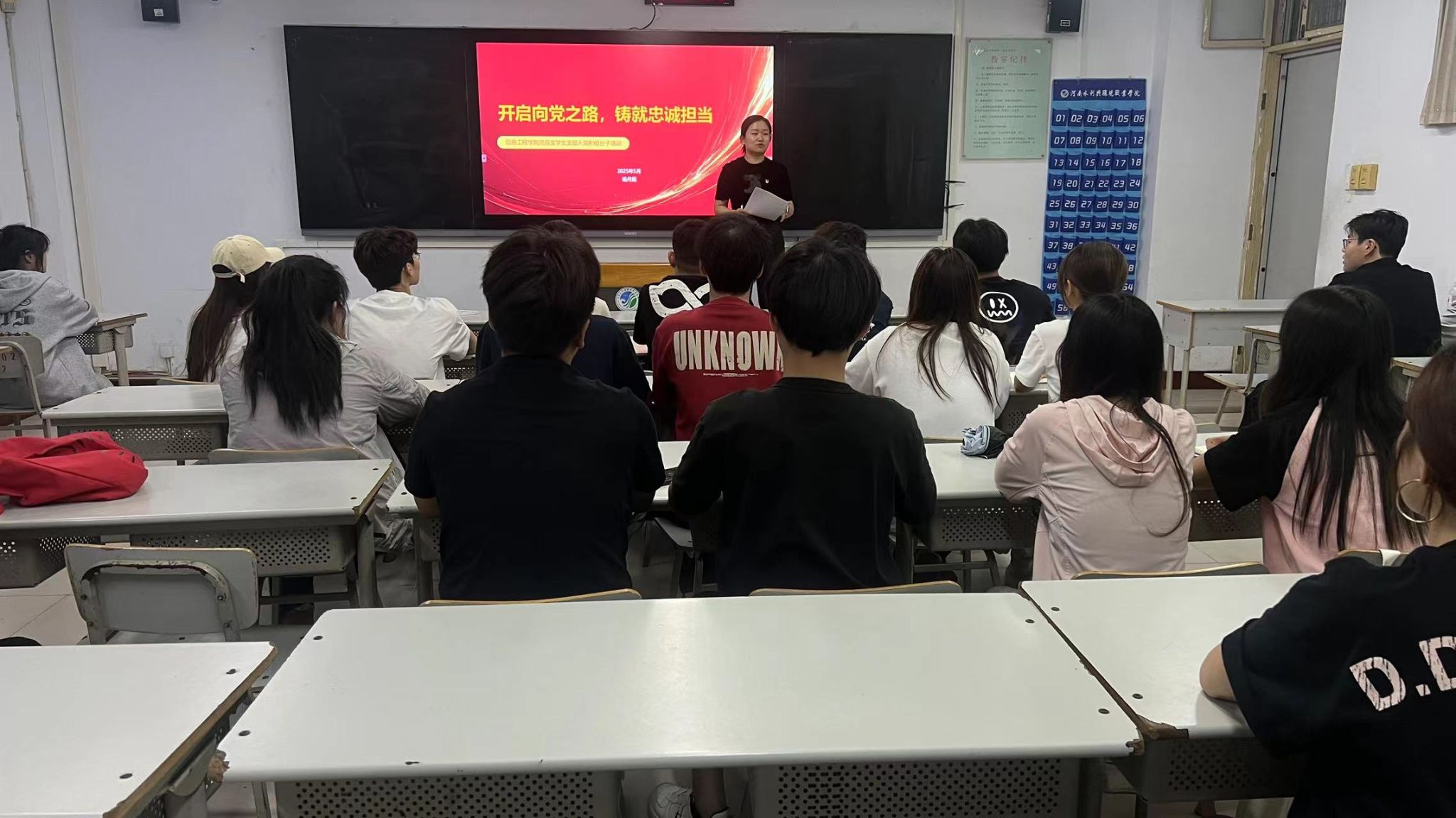 5月26日,公司党总支员工支部于南教401教室组织开展入党积极分子专题党课培训。支部书记杨月霞以“开启向党之路,铸就忠诚担当”为主题,围绕党的光辉历程、性质宗旨、党员权利义务、发展党员工作规程及入党动机教育等内容展开系统讲授,着力强化积极分子政治素养与责任意识。