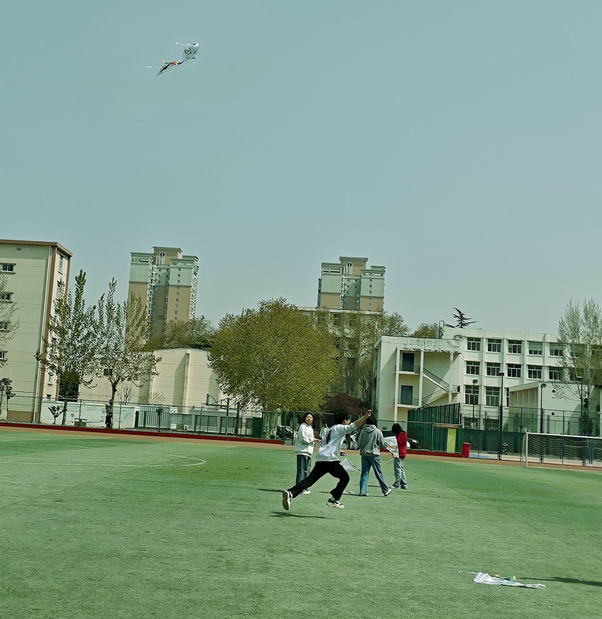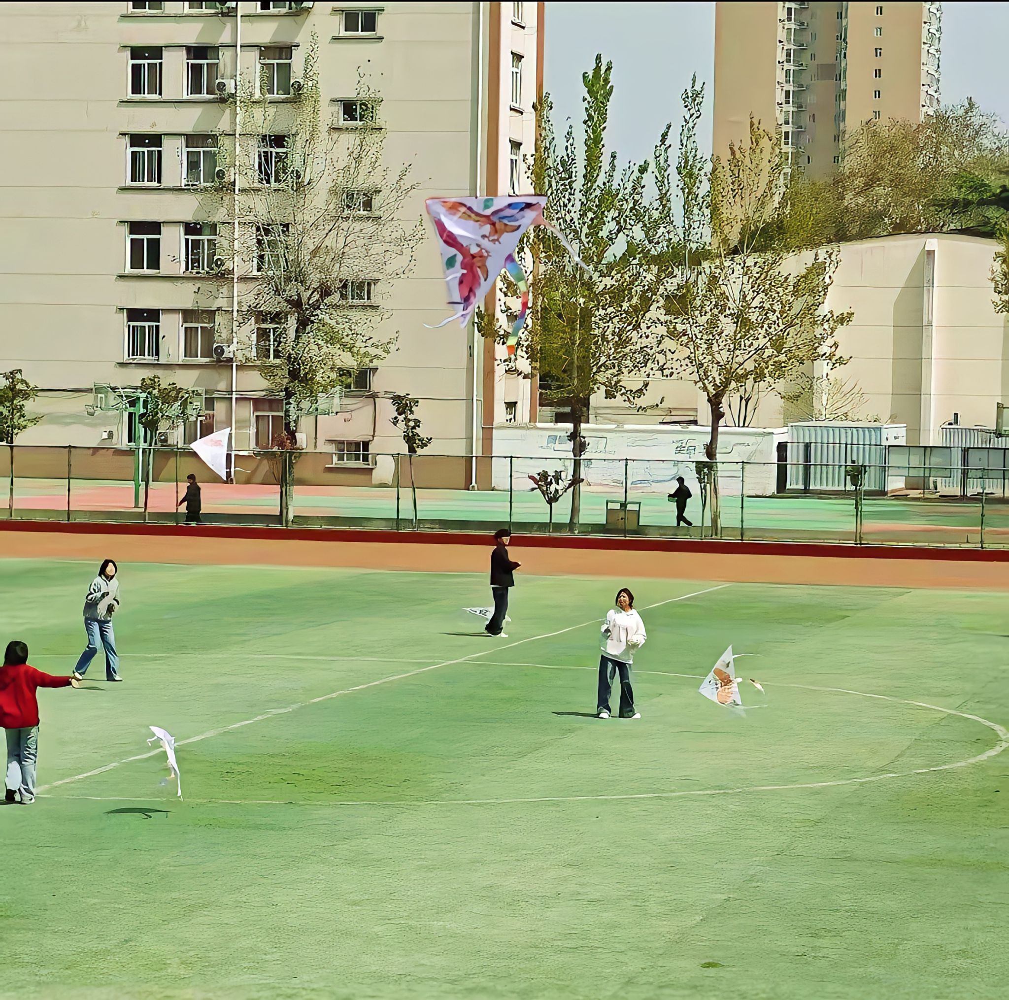 “春日有约,手绘纸鸢”活动同学们手持画笔,将传统文化与手工艺术相结合,纸鸢上晕染出绚丽的色彩,以独特的形式创作出一件件精美的纸鸢作品。完成作品后,同学们有序地在操场内纷纷放飞纸鸢。