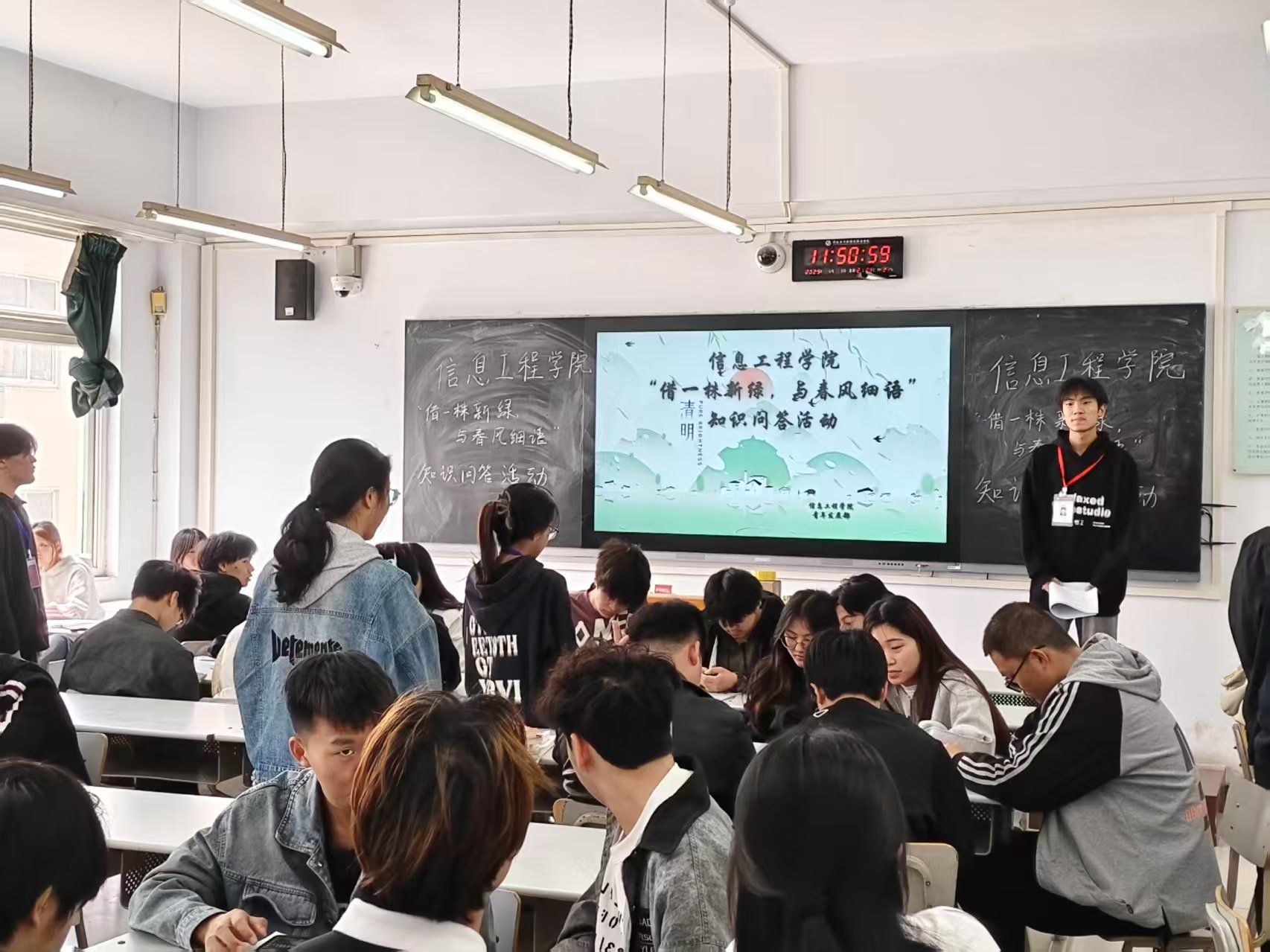 “借一株新绿,与春风细语”知识问答活动中,通过五人一组的团队竞赛形式进行小组问答。同学们在问答中深入探寻传统节日文化,既提高了个人知识储备,又通过团队协作增强了集体凝聚力