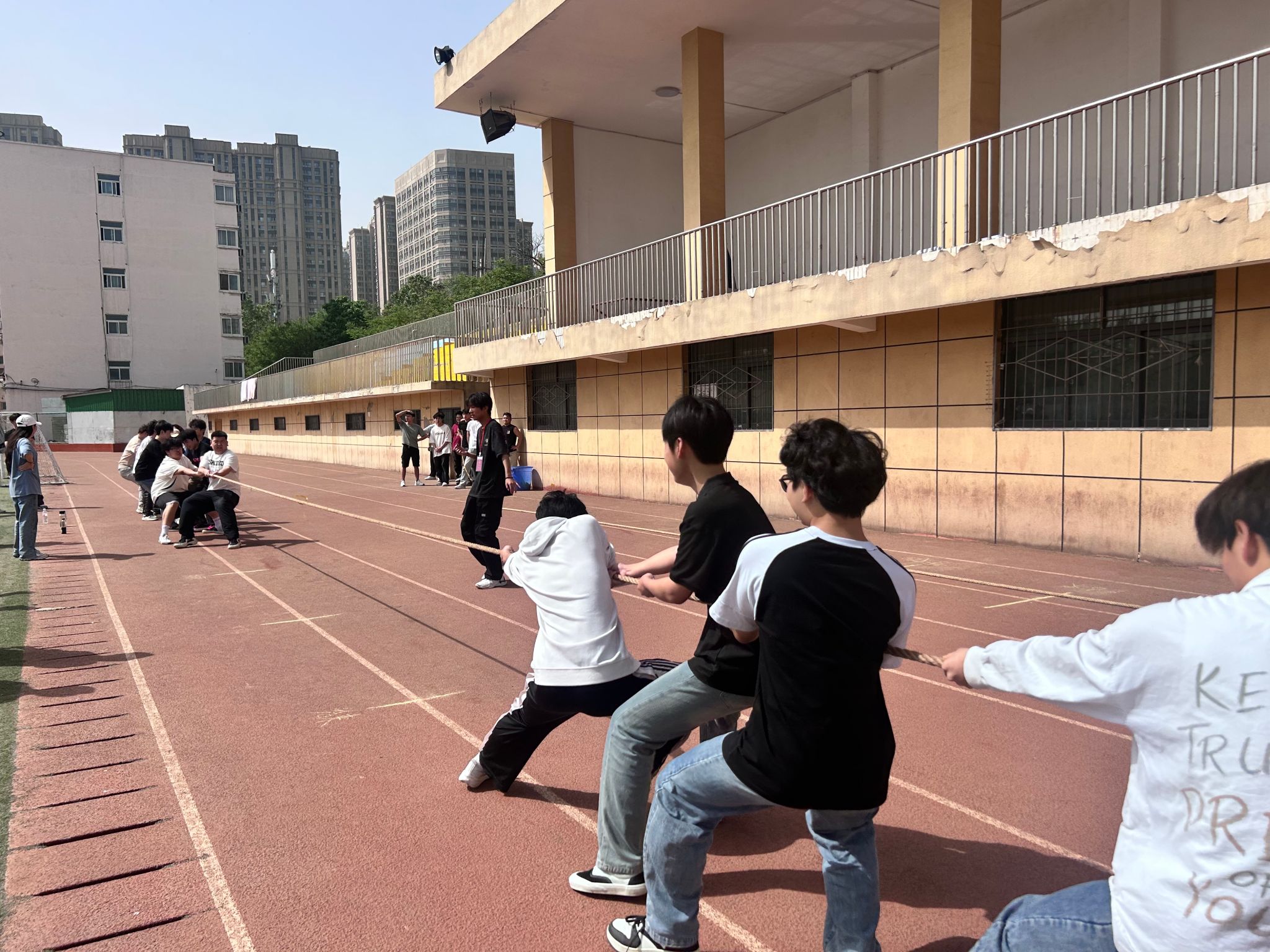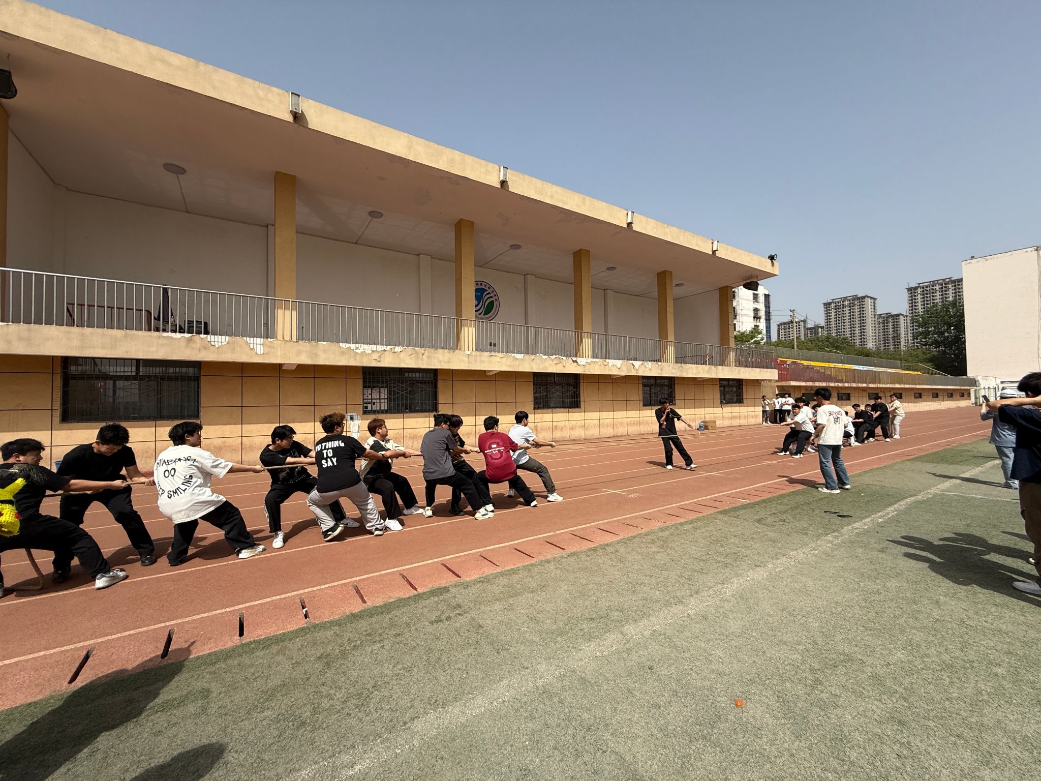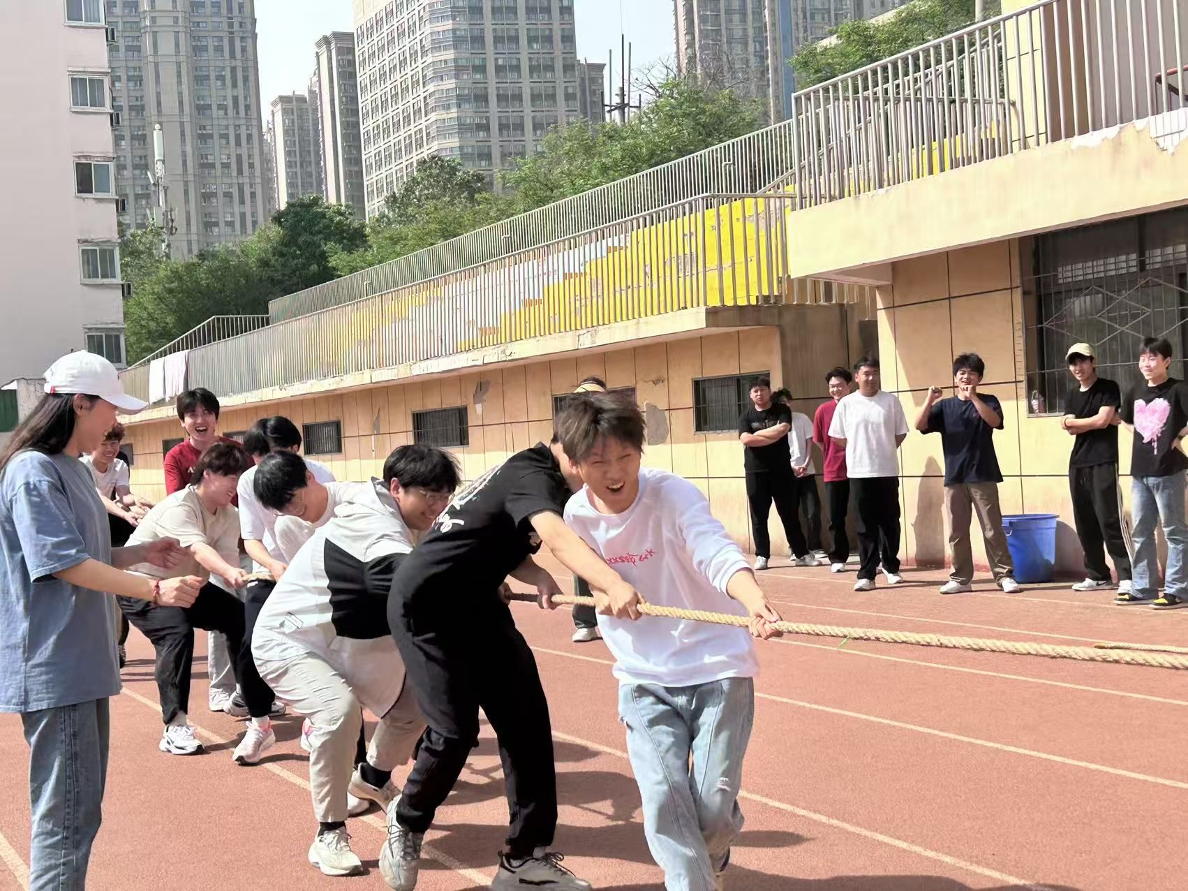 拔河比赛作为开场项目,瞬间点燃现场氛围。各队队员紧握绳索、身体后仰,在整齐的口号声中拼尽全力,围观同学呐喊助威,加油声此起彼伏。