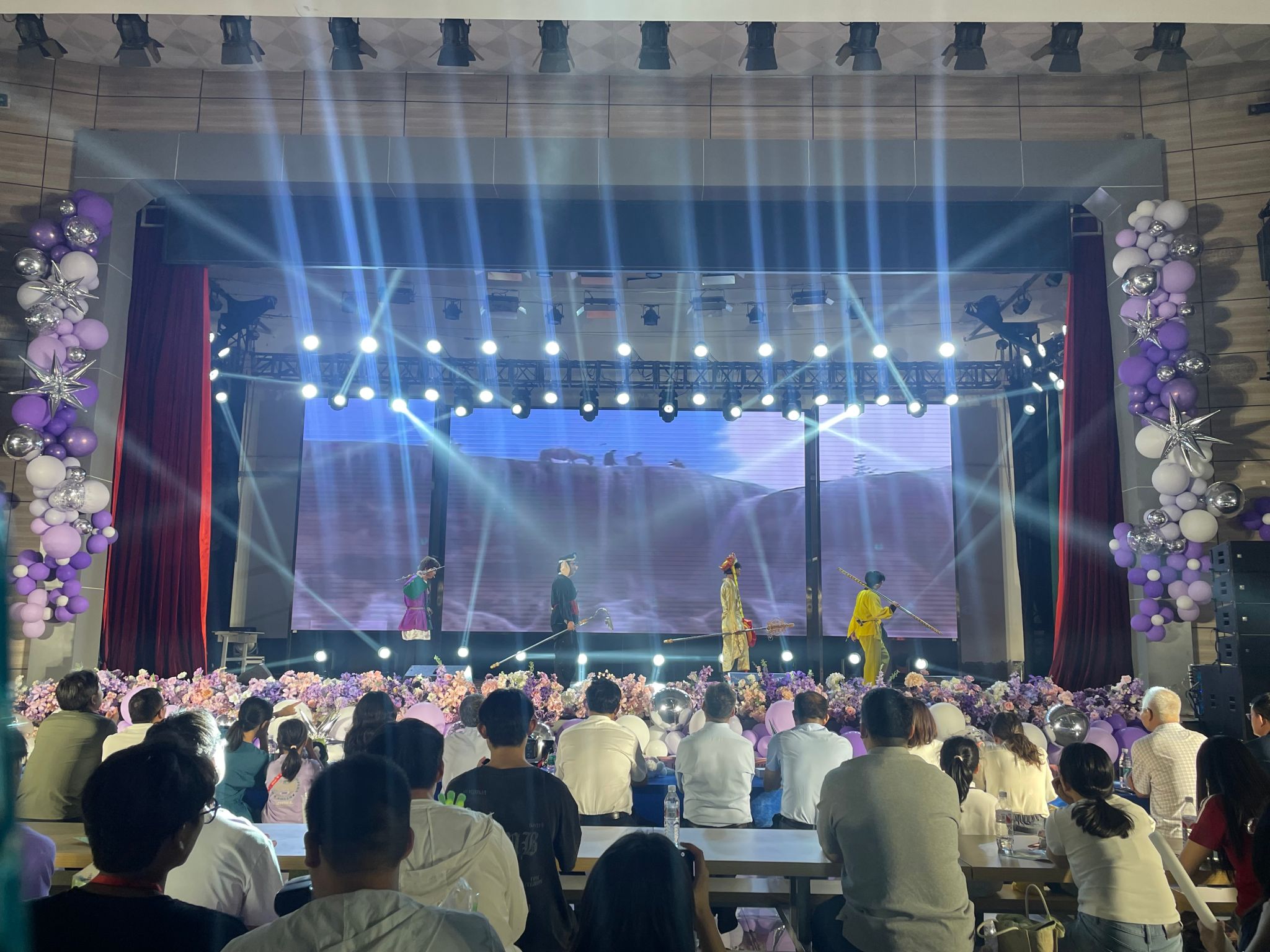 晚会在乐队联唱《逆战》《着魔》的热烈氛围中启幕,激烈的鼓点与铿锵的吉他旋律交织,瞬间点燃全场氛围。独唱《迷途羔羊》深情寄语毕业生勇敢告别青涩,阔步迈向人生新程;舞台剧《红包迷局》巧妙融入校园常见的诈骗案例,诙谐揭示反诈知识;戏曲《穆桂英挂帅》创新融合传统与现代美学,刚柔并济的演绎出巾帼英雄的飒爽英姿;街舞《whiplash》、合唱《鹿be free》以温暖励志的合唱,传递追梦精神;话剧《八十一难》以经典名著《西游记》为故事蓝本改编,展现了团队协作的力量;唱跳《像你这样的朋友》以轻快的节奏、洒脱的舞步带领观众重温校园生活的美好和友情的珍贵。
