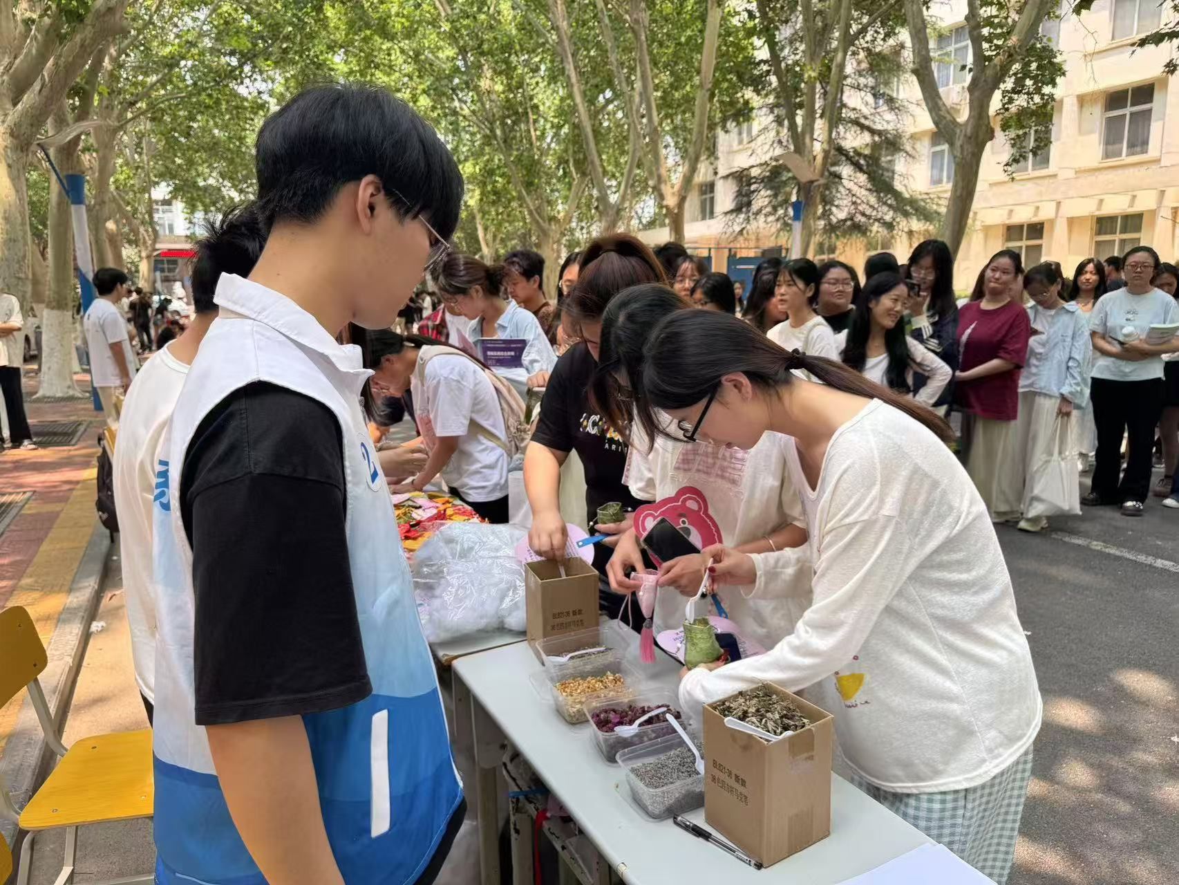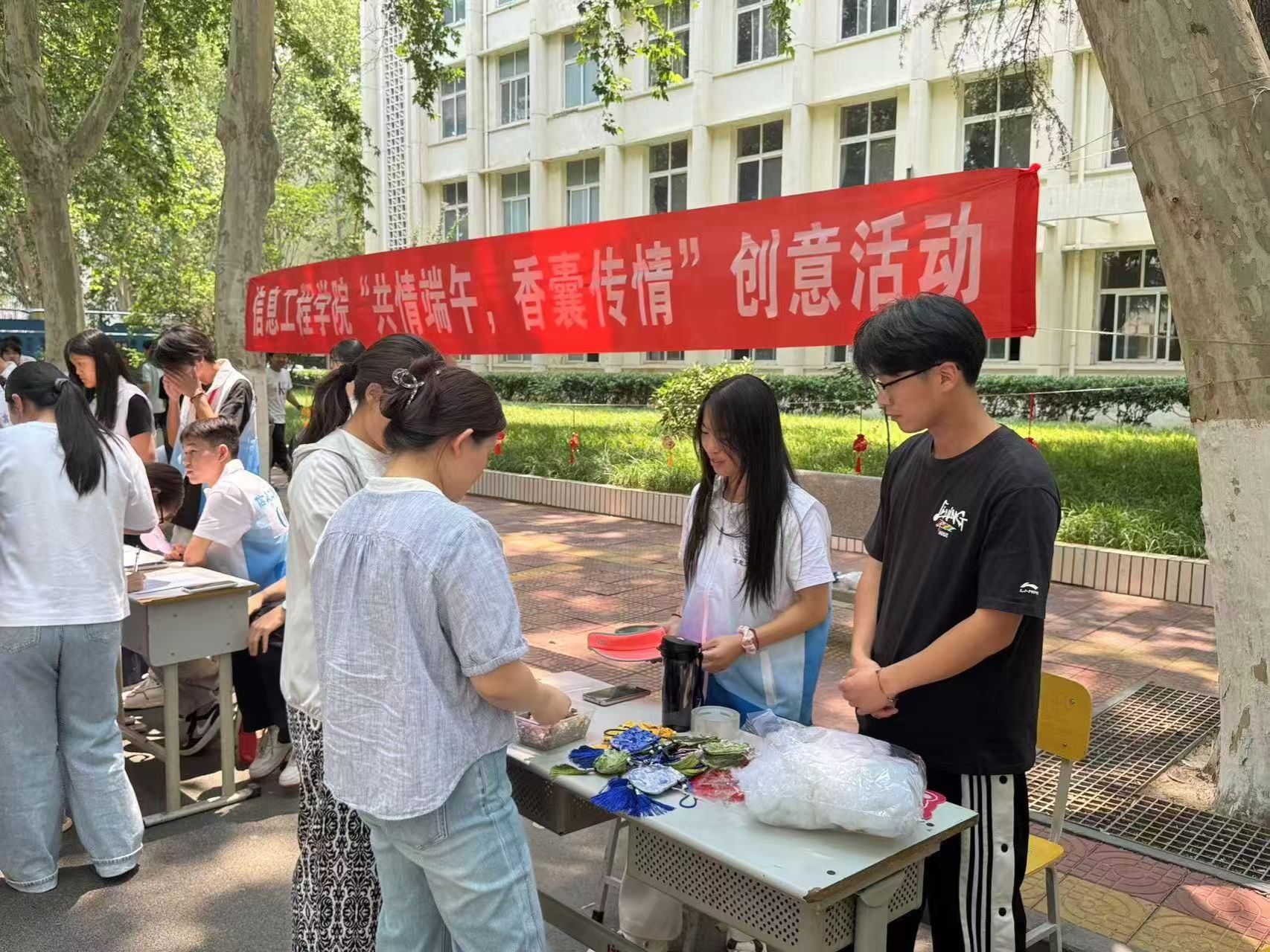 本次活动以“共情端午”为题,以制作香囊的形式吸引了众多师生踊跃参与。活动现场,志愿者们详细讲解了端午制作香囊的习俗以及香囊在古代驱虫避瘟、祈福纳祥的文化寓意,帮助师生深入了解端午传统习俗的文化内涵,激发了同学们对传统文化的浓厚兴趣。参与者们在实践中深刻感受传统文化的独特魅力,不少同学表示,将把亲手制作的香囊作为节日礼物,传递美好祝福。现场氛围温馨而热烈,浓浓的端午气息充斥着校园。